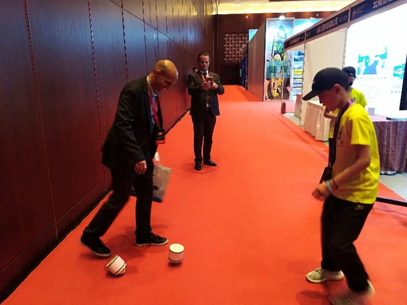 近年来,河南康华足螺有限公司对足螺研发取得长足进步,足螺运动普及校园速度逐渐加快,会展期间足螺体育产品引来广大体育行业嘉宾大咖及体育产业从业者、外国朋友们的驻足观看交流。企鹅体育总裁刘建宏对新型体育运动产品足螺给予了评价和建议,前美国足球队教练一边拿着足螺一边盯着现场足螺表演者,并和身边的足螺讲解员以及翻译讨论个不停,从他与翻译的对话中,能够听到他对足螺表示好奇,也对这个新型体育运动很感兴趣。世界轮滑冠军廖杰称:“足螺和轮滑体育用品都是用脚运动,足螺应该多举办大型赛事活动,名气也会越来越大”。路过的芬兰大使也被精彩的踢螺运动所吸引,不由自主地驻足观看拍照留念,这足以说明足螺运动具备了“国际化”水准!
